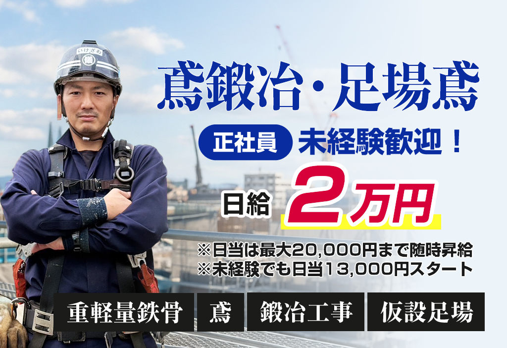 | 募集職種 | 鳶鍛冶スタッフ 足場鳶スタッフ |